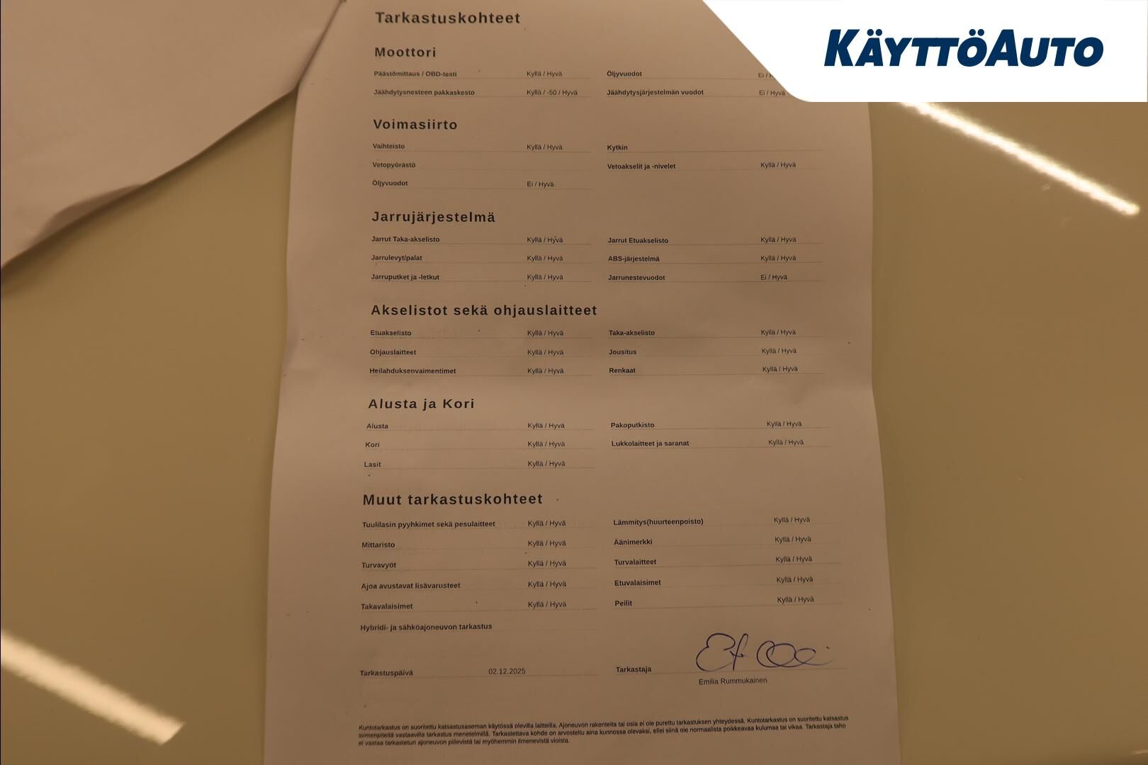 Käyttöauton valikoimassa on vain tarkastettuja ja huollettuja käytettyjä autoja - kaikki vaihtoautot käyvät läpi perusteellisen tarkastuksen ennen myyntiin asettamista. Tarkastus sisältää muun muassa auton teknisen kunnon, huoltohistorian ja yleisen siisteyden. Käyttöautossa laatu on tärkein prioriteetti, ja haluamme asiakkaidemme voivan olla varmoja ostamansa auton luotettavuudesta ja turvallisuudesta.