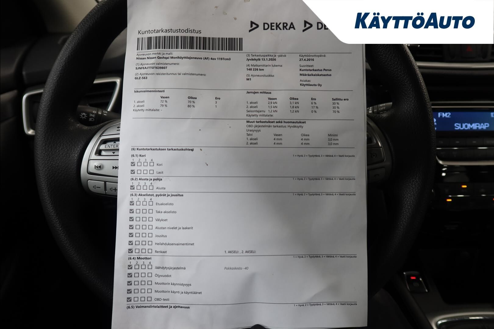 NISSAN Qashqai DIG-T 115 Visia 2WD 6M/T E6**Huoltokirja/2-renkaat/Lohkolämpö+sisähaara/Jakoketju vaihdettu****2016148 000 kmBensiini Jyväskylä8 900 € eller t.ex. 126 €/månad